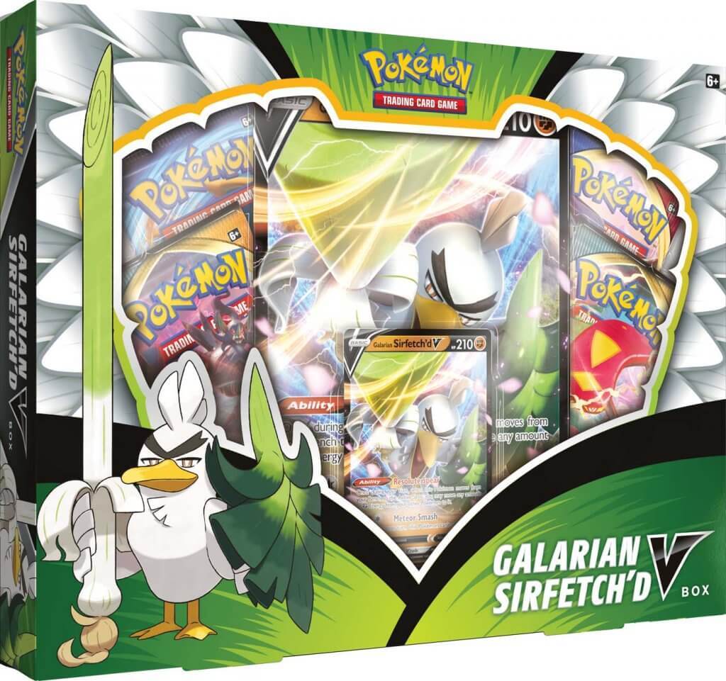The Pokémon TCG: Galarian Sirfetch’d V Box includes: